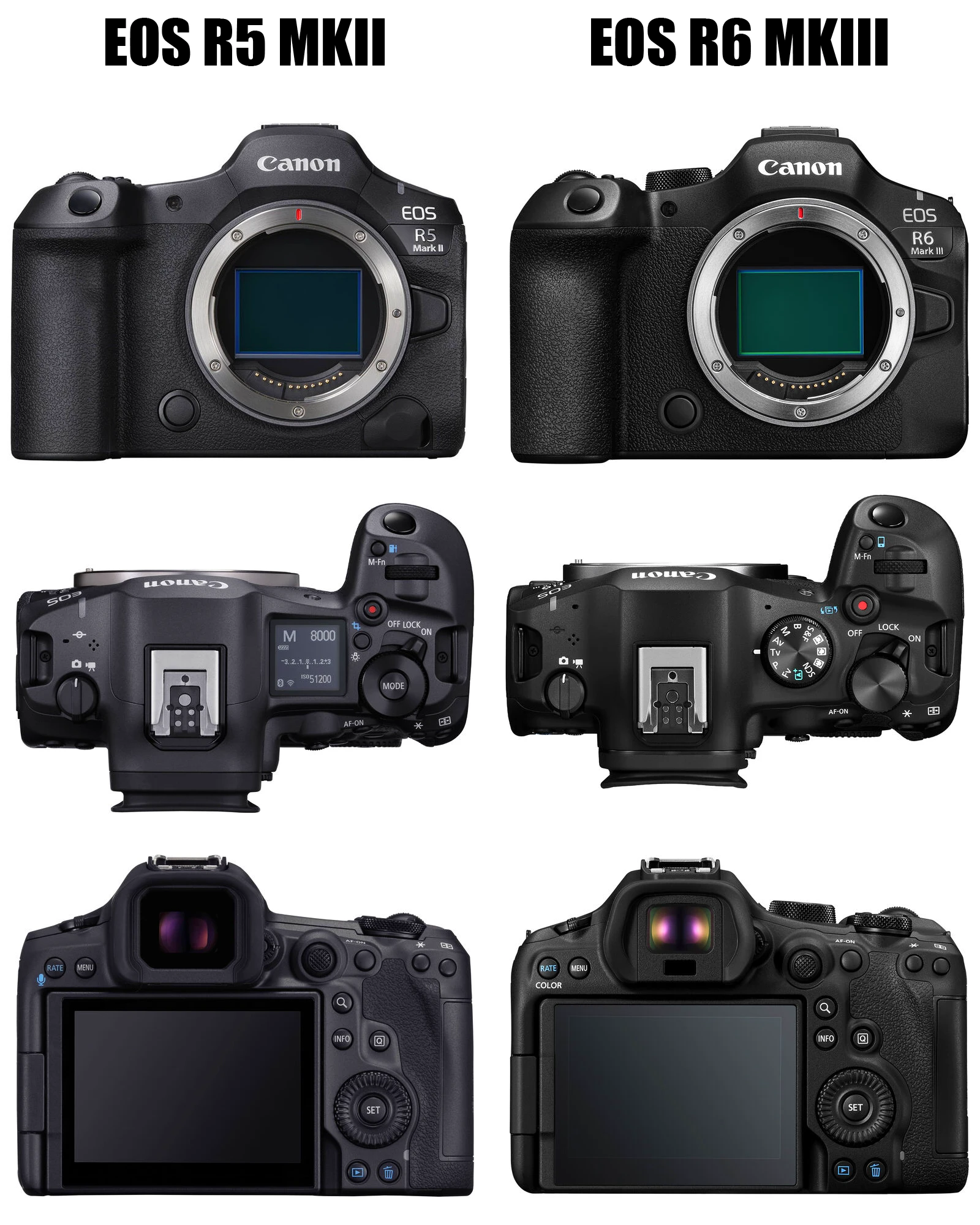 Modely R5 Mark II aj R6 Mark III podporujú rovnaké základné štandardy teraz už fixnej ergonómie bezzrkadlovok od spoločnosti Canon.