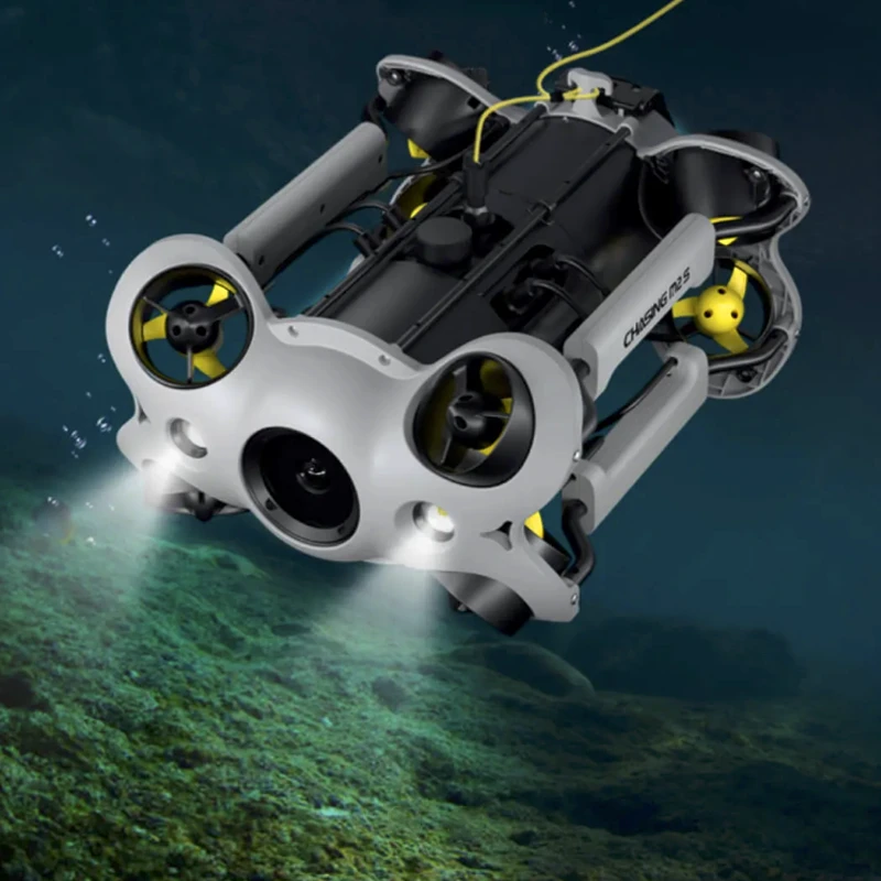 Profesionálny podvodný dron Chasing M2 S má 8 vektorových trysiek, ktoré poskytujú stabilný výkon. M2 S má snímač s rozlíšením 12MPx a umožňuje záznam videa 4K 30 fps, alebo Full HD 30/60/120 fps. Dron je tiež kompatibilný s voliteľným vybavením, ako je robotická ruka, GoPro kamera, externé svetlá atď. Technológia proti zaseknutiu motora pomáha zaistiť, aby sa M2 S nezaboril do piesku. Chasing má 2 vstavané LED svetlá. S jednou batériou dokáže pracovať až 4 hodiny.
