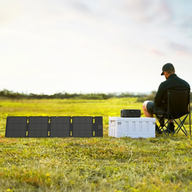 - Skladací 45W solárny panel s výstupom USB-C umožňuje priame nabíjanie mobilov, tabletov aj notebookov.