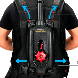 Flycam Flowline Master profesionálne redistribuuje hmotnosť vášho zariadenia z ramien a krku rovnomerne po celom chrbte pomocou ergonomického systému popruhov, čo vám umožní nakrúcať hodiny bez únavy.