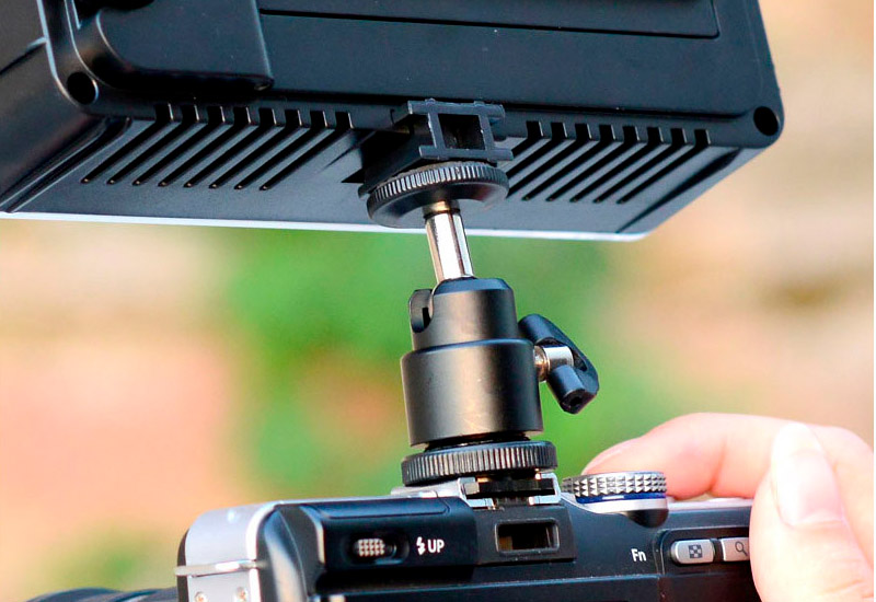 - Guľová hlava je otočná a nastaviteľná v celom rozsahu 360°a je možné upnúť ju na ktorýkoľvek statív so závitom 1/4 "(pomocou redukcie 3/8").