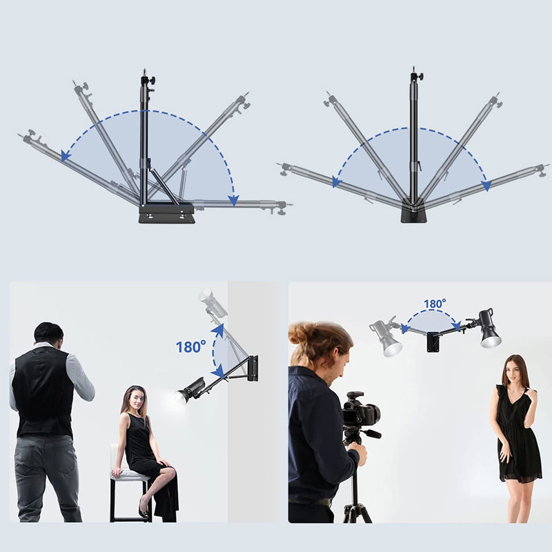 Ak ste unavení z neustáleho prestavovania statívov, nedostatku priestoru alebo nedostatočnej flexibility v práci so svetlom, nástenný držiak na svetlo 180 cm je presne to, čo potrebujete. Ponúka profesionálnu stabilitu, maximálnu nastaviteľnosť a šetrí drahocenný priestor. Či už fotíte portréty, natáčate video alebo pracujete na kreatívnych svetelných scénach, tento držiak vám dá voľnosť, komfort a istotu, že svetlo máte vždy pod kontrolou.