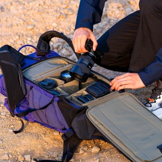 - Vyberateľné a variabilné prepážky umožňujú prepnúť batoh podľa dňa: režim na tvorbu obsahu (napríklad 2 telá a 3 objektívy), režim turistickej fotografie (napríklad 1 telo a 2 objektívy) alebo voľnočasový režim, keď chcete len bežné veci a oblečenie. Keď fotovložku nepotrebujete, zložíte ju a získate plnohodnotný outdoorový batoh.