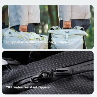 - Nízka hmotnosť bez kompromisov v nosnosti: 20L verzia váži približne 1,3 kg, 30L verzia približne 1,45 kg. To je presne ten rozdiel, ktorý na túre cítiť po 10 000 krokoch, a pri cestovaní oceníte každý ušetrený gram.