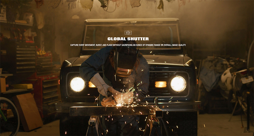 Veľký obrazový snímač Super 35 s rozlíšením 19.9MPx + globálna závierka