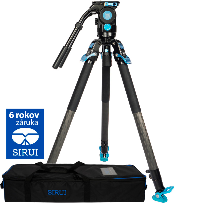 Karbonový videostatív Sirui SVT75 s unikátnym Rapid Systémom pre jednokrokové nastavenie výšky video statívu. Set obsahuje aj profesionálnu fluidnú hlavu SVH15 s protiváhou a 75 mm pologuľu pre rýchle vyváženie.