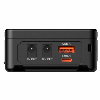 Rozhrania ako USB-A / USB-C / D-tap / DC 8V / DC 12V / V Mount sú tiež zahrnuté pre efektívne nabíjanie / napájanie fotoaparátu / kamkordéra / monitora / bezdrôtového vysielača videa / svetla / mobilného telefónu / notebooku atď. ... bez použitia V-montážnej platne na konverziu!