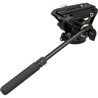 Kvapalinová hlava je dodávaná s teleskopickou rukoväťou, ktorá sa ľahko používa a skladuje, a v spodnej časti má otvory so závitom 3/8"-16 na priame pripojenie k statívom, posuvným koľajničkám a ďalšiemu vybaveniu.