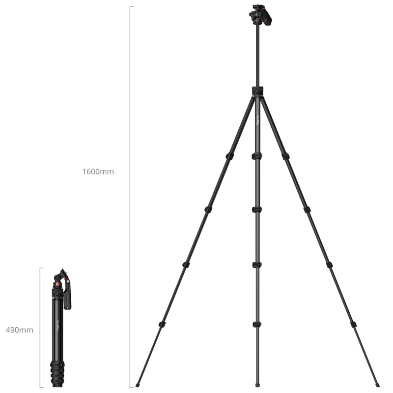 - S hmotnosťou iba 718 gramov a kompaktnou veľkosťou 49 cm po zložení je tento statív ideálny spoločník na cesty. Nezaťaží vašu batožinu, ale výrazne zlepší kvalitu vašich cestovných fotografií a videí.