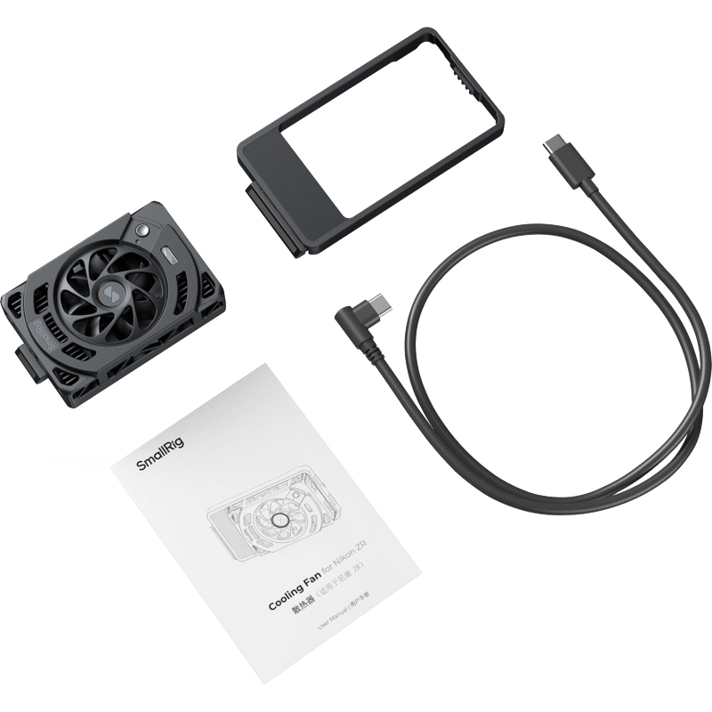 - V balení nájdete SmallRig Cooling Fan for Nikon ZR a USB-C napájací kábel, takže môžete začať chladiť hneď po rozbalení bez dokupovania základného príslušenstva.